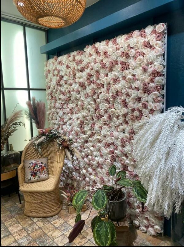 - Ce mur floral pastel avec sa structure mesurant 240x240cm pour décorer votre événement ou réception. La décoration de votre salle de réception sera sublimée avec ce mur floral design de couleur mixées en soie.